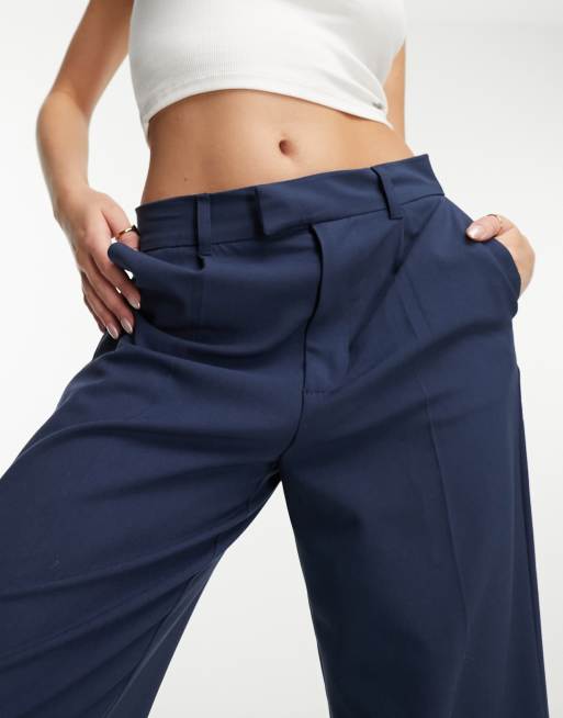 Pull Bear high waisted tailored pants in navy Very well made.