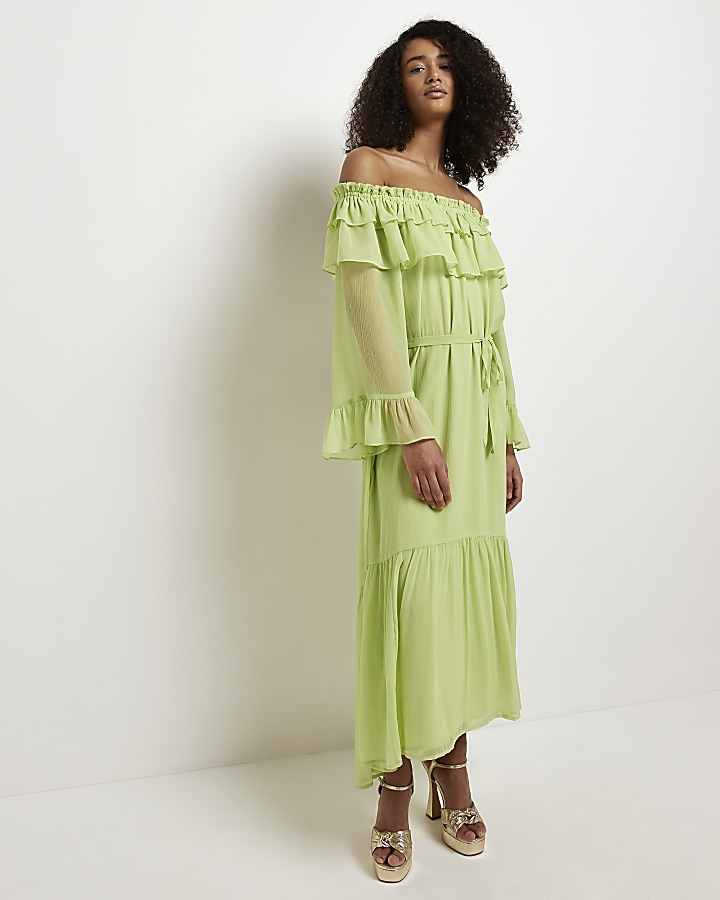 Green frill bardot midi dress River Island Very well made.